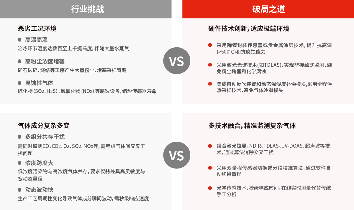 在鋼鐵行業(yè),復(fù)雜的工況環(huán)境給氣體監(jiān)測帶來了諸多嚴(yán)峻挑戰(zhàn)。高溫高濕、高腐蝕、高粉塵濃度以及氣體交叉干擾等問題,不僅影響監(jiān)測設(shè)備的穩(wěn)定性和準(zhǔn)確性,還增加了維護(hù)成本和安全風(fēng)險(xiǎn)。面對這些行業(yè)難題,四方光電(武漢)儀器有限公司(以下簡稱“四方儀器”)憑借先進(jìn)的自主技術(shù)與創(chuàng)新的解決方案,成功突破傳統(tǒng)監(jiān)測的瓶頸,為工業(yè)氣體監(jiān)測提供了高效、精準(zhǔn)、可靠的破局之道。