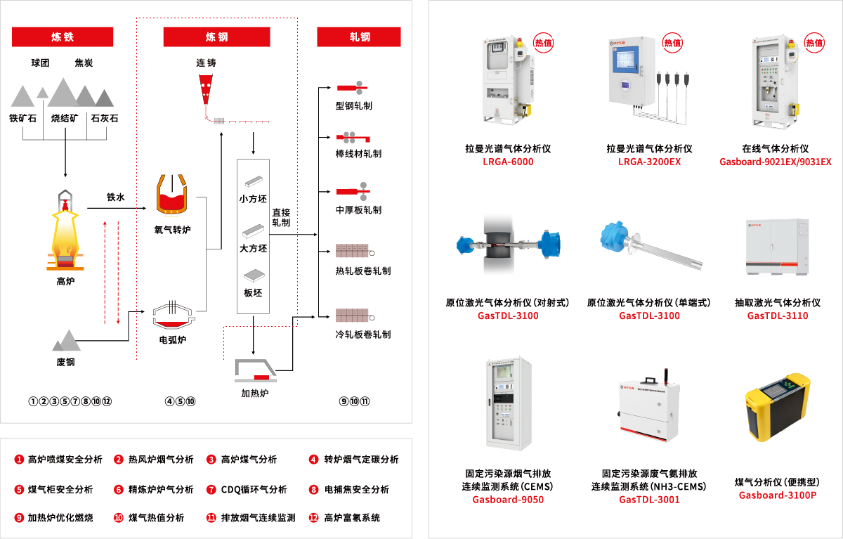 四方儀器憑借其先進(jìn)的氣體傳感器技術(shù)和豐富的工業(yè)監(jiān)測設(shè)備開發(fā)經(jīng)驗(yàn),針對鋼鐵行業(yè)精心打造了一套融合多種氣體傳感器技術(shù)的氣體監(jiān)測綜合解決方案,實(shí)現(xiàn)了對鋼鐵冶煉全流程(煉鐵、煉鋼、軋鋼等)的氣體監(jiān)測,精準(zhǔn)測量煤氣熱值、爐膛內(nèi)關(guān)鍵指標(biāo)以及環(huán)保限制因子等重要參數(shù),可有效評價(jià)爐內(nèi)燃燒狀態(tài),合理調(diào)節(jié)各種爐型的熱工參數(shù),從而助力鋼鐵行業(yè)的節(jié)能減排行動。